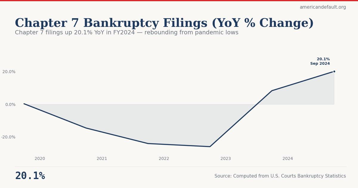 Chapter 7 filings up 20.1% YoY in FY2024 — rebounding from pandemic lows