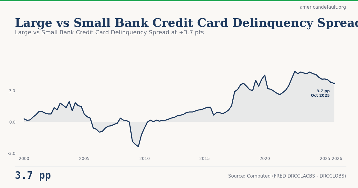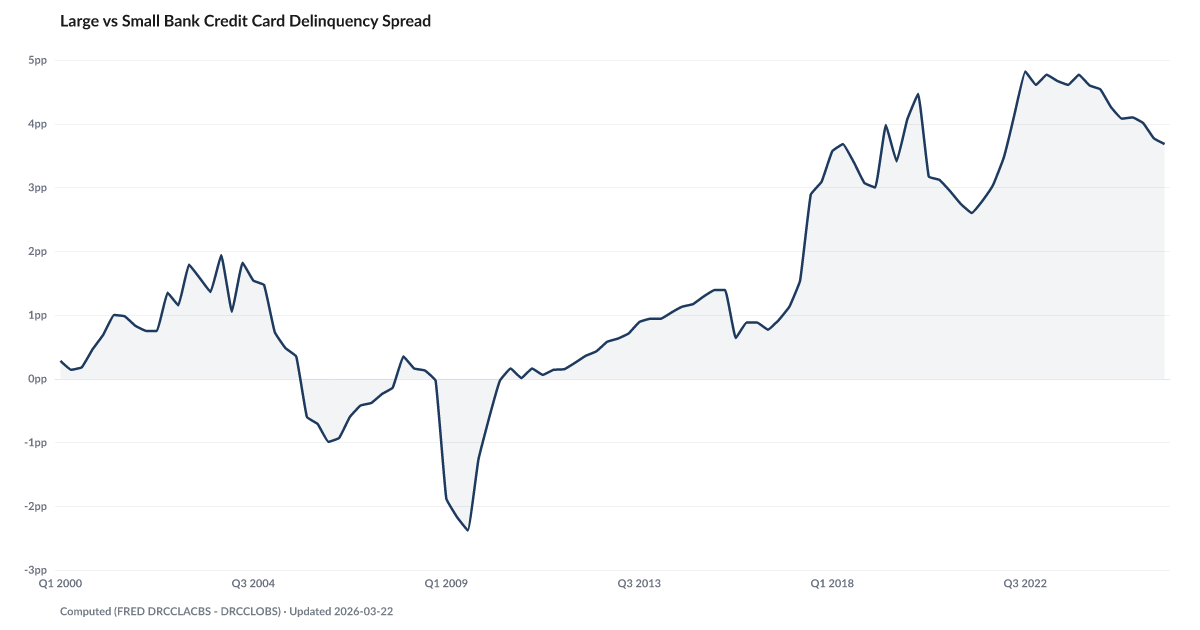 Large vs Small Bank Credit Card Delinquency Spread at +3.7 pts