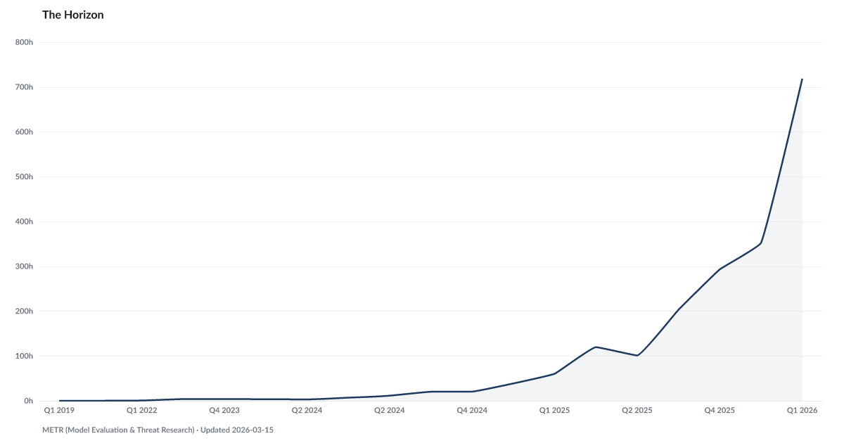 719 hours — up from 60 hours a year ago; AI can now work autonomously for over 4 weeks