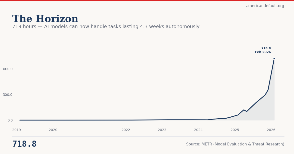 719 hours — AI models can now handle tasks lasting 4.3 weeks autonomously