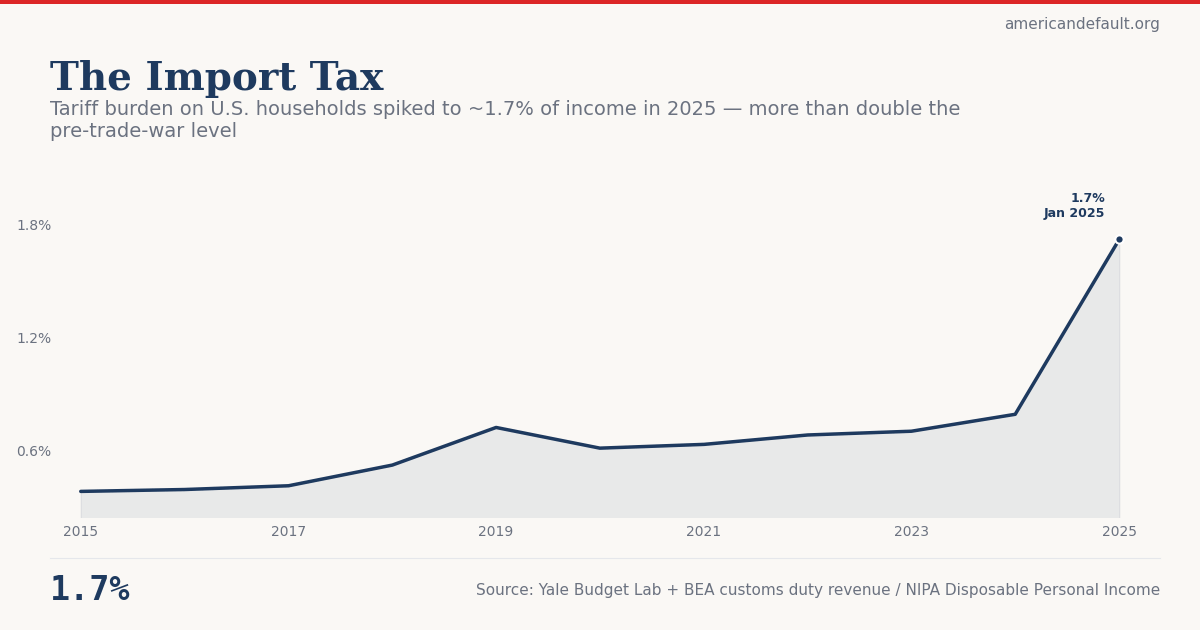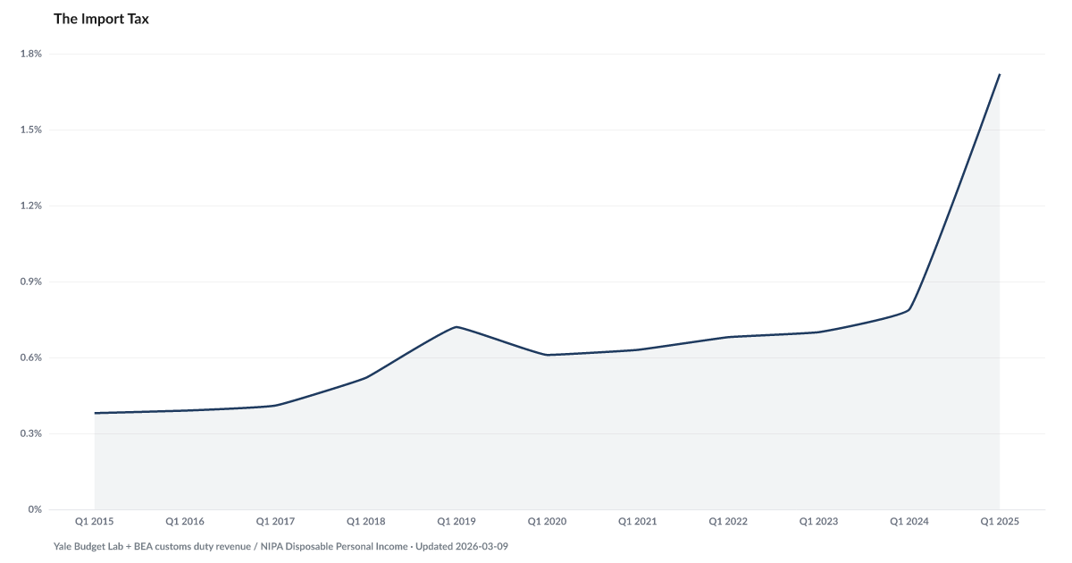 Tariff burden on U.S. households spiked to ~1.7% of income in 2025 — more than double the pre-trade-war level