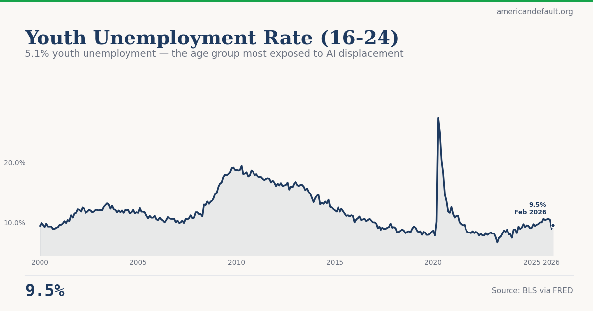5.1% youth unemployment — the age group most exposed to AI displacement